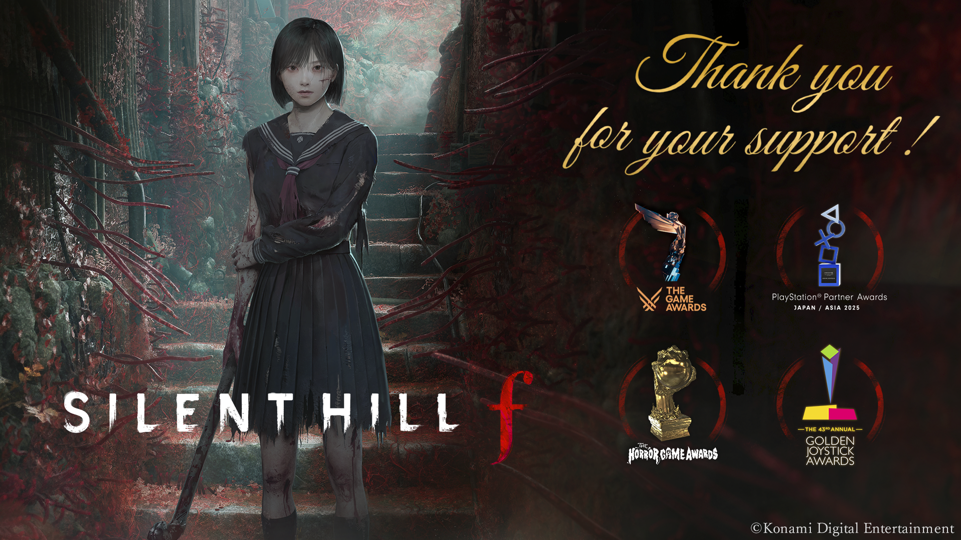 2025 年 9 月 25 日『SILENT HILL f』が正式販売となりましたが、販売初日で 100 万本の販売を突破し、サイレントヒルシリーズ史上最早記録を更新しました。世界中のレビュワーやプレイヤーから熱いご支援をいただき、本発売以来、同作が各ゲーム賞にノミネート・評価されており、心より感謝申し上げます。