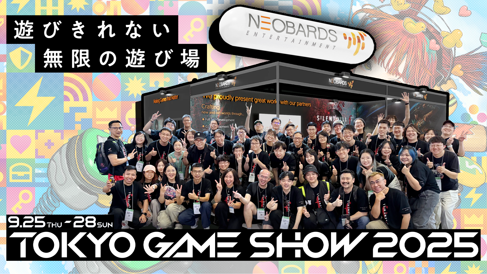 2024 年の東京ゲームショウ(以下、「TGS」)に続き、ネオバーズは今年も盛大に登場しました。開幕初日が注目の『SILENT HILL f』の発売日でもあり、 70 人以上のスタッフが現場で勢揃いし、この新章突入の瞬間を共に見届けました!下記はTGS イベントに関する記事です。 弊社のTGS出展に欠かせない、今は風物詩のように会場で浮き上がる大きなバルーンとともに、今年の出展の幕も上がりました! ゲーム業界の仲間と人気インフルエンサーの方々もわざわざ弊社のブースまでいらっしゃって、たくさんのお祝いや労いのお言葉をいただきました。 「SILENT HILL」シリーズプロデューサーの岡本基様(株式会社コナミデジタルエンタテインメント)も無事にゲームを発売できたことをお祝いにお越しいただきました。 左からはネオバーズ ゲームディレクターの Al Yang、「SILENT HILL」シリーズプロデューサー の岡本基様、ネオバーズ CEOの Wonder Lin。 コナミデジタルエンタテインメント(KONAMI) の『SILENT HILL f』ブースでは、主人公の雛子の大型看板 をメインビジュアルにしています。KONAMIが用意した没入型謎解き密室(『SILENT HILL f 残置物展』)の前には、長蛇の列が出来るほどの熱狂ぶりでした! 弊社は今年、台北と蘇州から合わせて 70名以上のスタッフが来場し、一緒に『SILENT HILL f』の正式発売を祝いました。 7 月の Anime Expo 及び 8 月の Gamescom に登場し注目を浴びた、ボスである咲子らしきもの が TGS にも登場。美しくもおぞましい雰囲気で会場の目玉となりました。