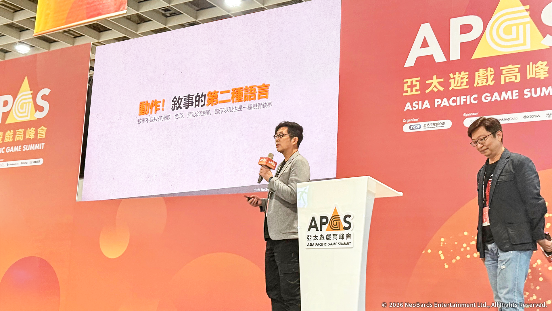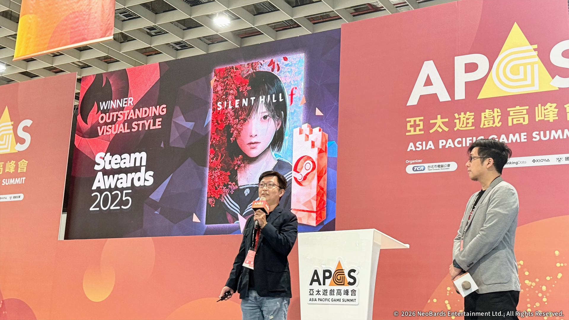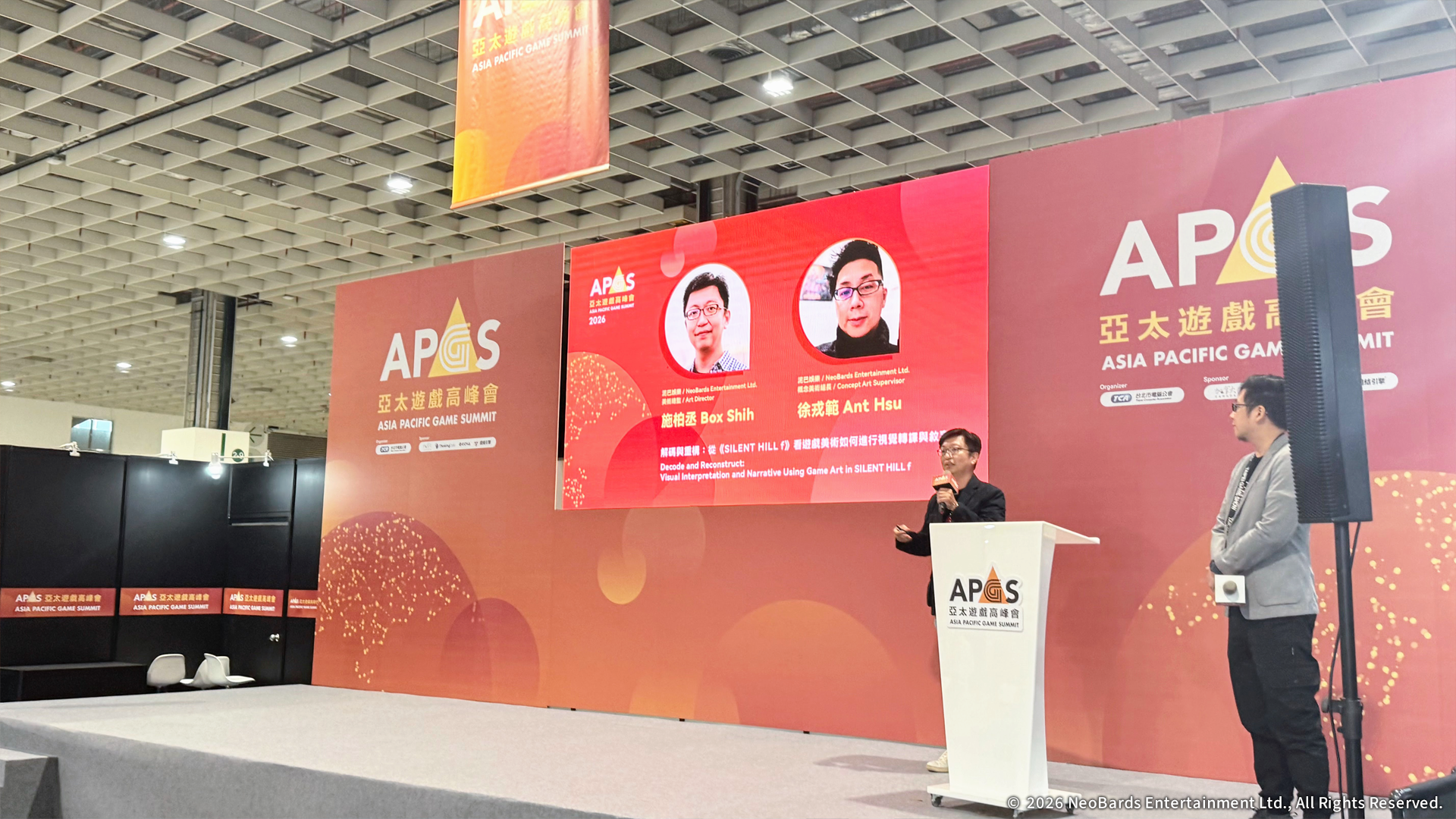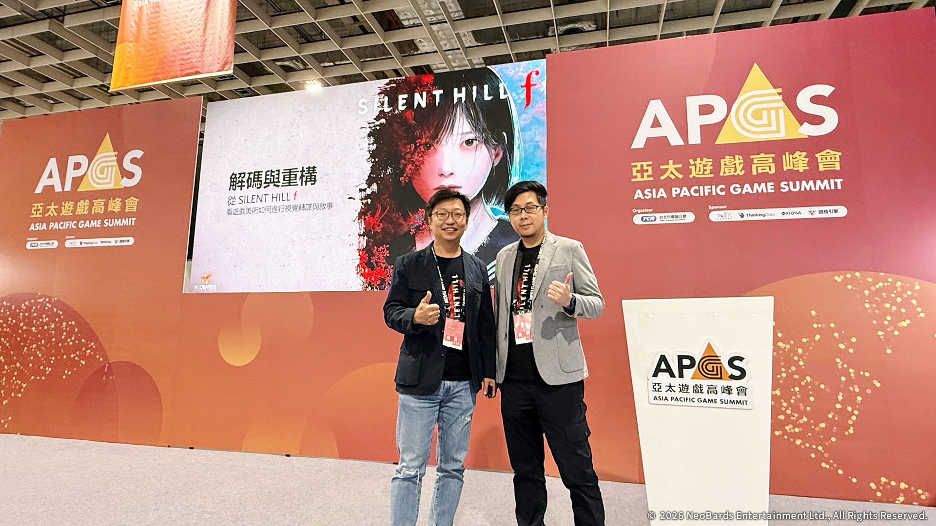 左起KONAMI《SILENT HILL》 系列製作人岡本基、NeoBards 遊戲總監 AL Yang