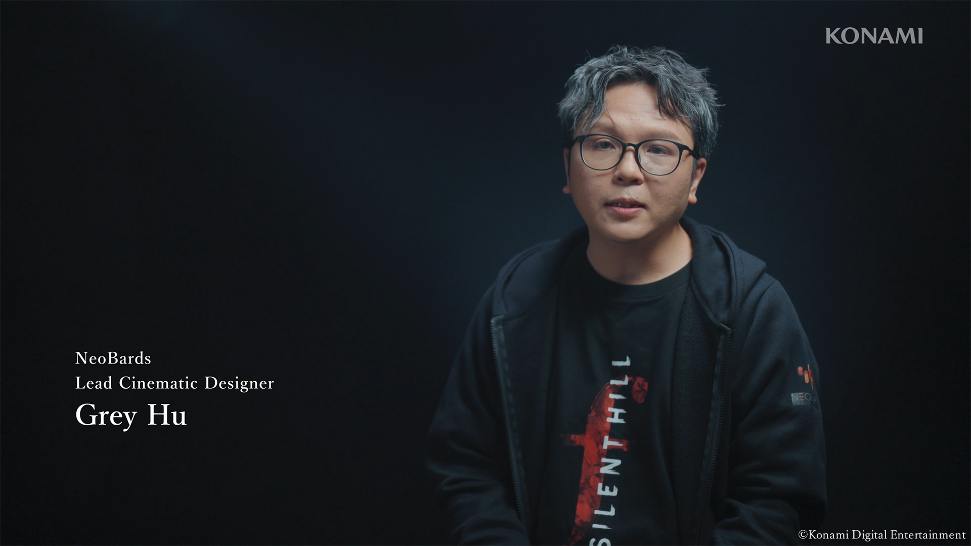 劇情演出部分由 Grey Hu負責,他主張以透過鏡頭語言與構圖設計,強化敘事節奏與情緒張力。遊戲在敘事上融合經典恐怖風格與日本文化背景,從西方視角轉向東方語境,希望透過電影式演出,讓全球玩家更深入地體驗《沉默之丘 f》所塑造的獨特世界觀。